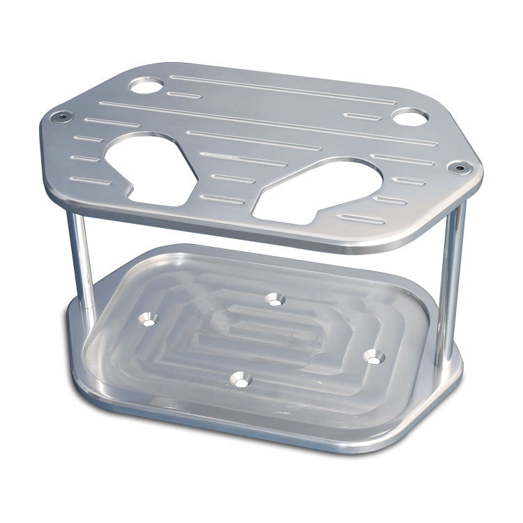 Ideal for trunk mounting of your Optima battery, these billet aluminum battery boxes are manufactured for the popular Optima 34"eries battery (measures 10"L x 6.8"W x 7.8"H). The box features a ball milled full top mount and base. The kit includes billet aluminum mounting posts and stainless steel fasteners. The bottom is drilled for four 1/4"ounting fasteners (not included).