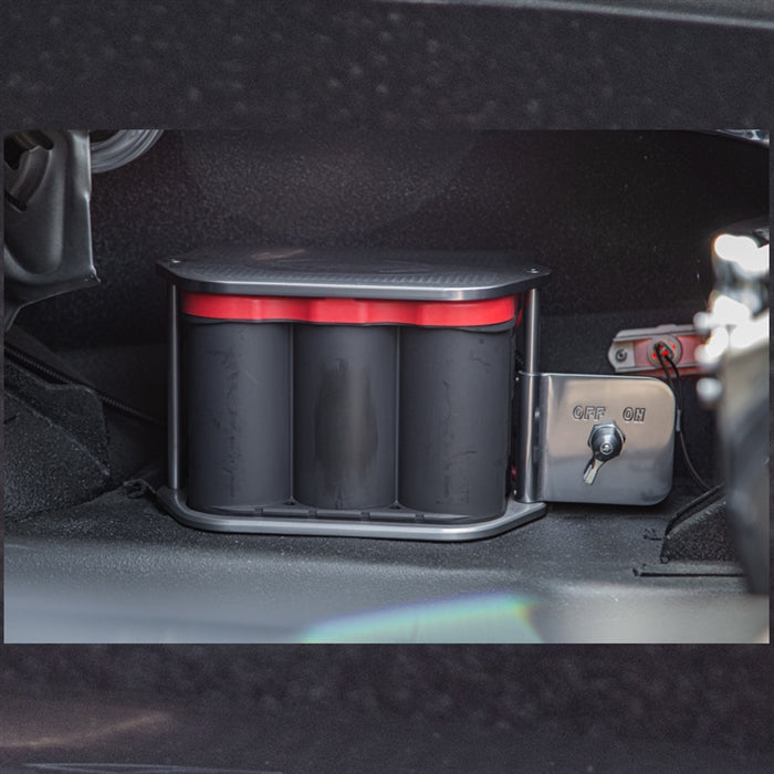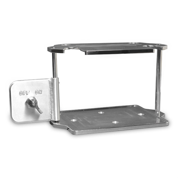 Eddie Motorsport's simple fix for what was once a time consuming problem-adding a battery switch to your charging system. Made from 3/16" thick aluminum, our Billet Battery Disconnect Switch kits can be easily attached to the mount posts on our battery boxes. Simply slide the battery switch panel over the side post and secure with the mount's two set screws. Works with posts up to 1/2". The kits come with a high quality battery switch (MS374-03) and panel (battery box is sold separately).