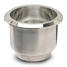 These Medium drink holders are precision CNC-machined from solid chunk of high quality 6061T6 aluminum. They are an attractive and functional insert for holding a soda can or fountain drink. They are held in place by a press fit or a small amount of glue or silicone. The drink holders fit in a 3 3/4" hole and are 3 1/8" deep. The outer flange measures 4 1/2"