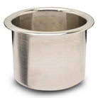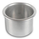 These drink holders are spun aluminum and are an attractive and functional insert for holding a soda can or fountain drink. These are also our most affordable drink holders. They are held in place by a press fit or a small amount of glue or silicone. The drink holders fit in a 3 3/4" hole and are 2 7/8" deep. The outer flange measures 4 3/8".