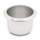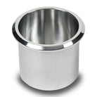 These Small drink holders are precision CNC-machined from solid chunk of high quality 6061T6 aluminum. They are an attractive and functional insert for holding a soda can or fountain drink. They are held in place by a press fit or a small amount of glue or silicone. The drink holders fit in a 3" hole and are 2 5/8" deep. The outer flange measures 3 1/2".