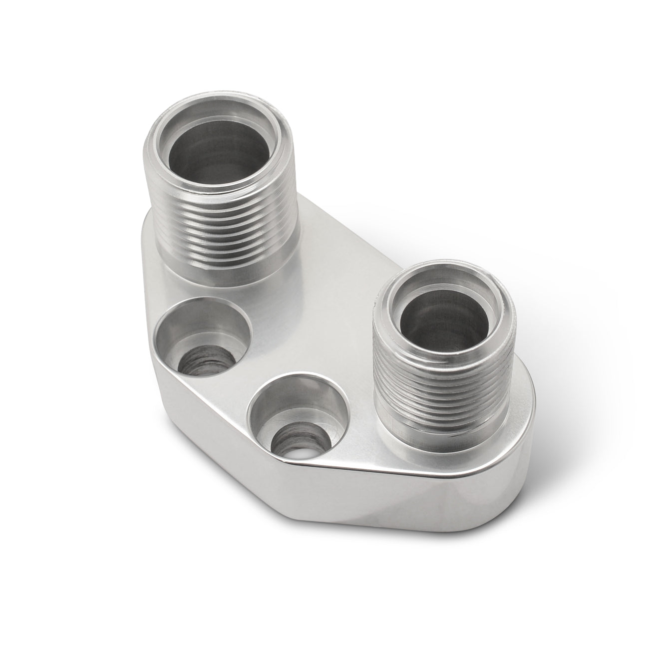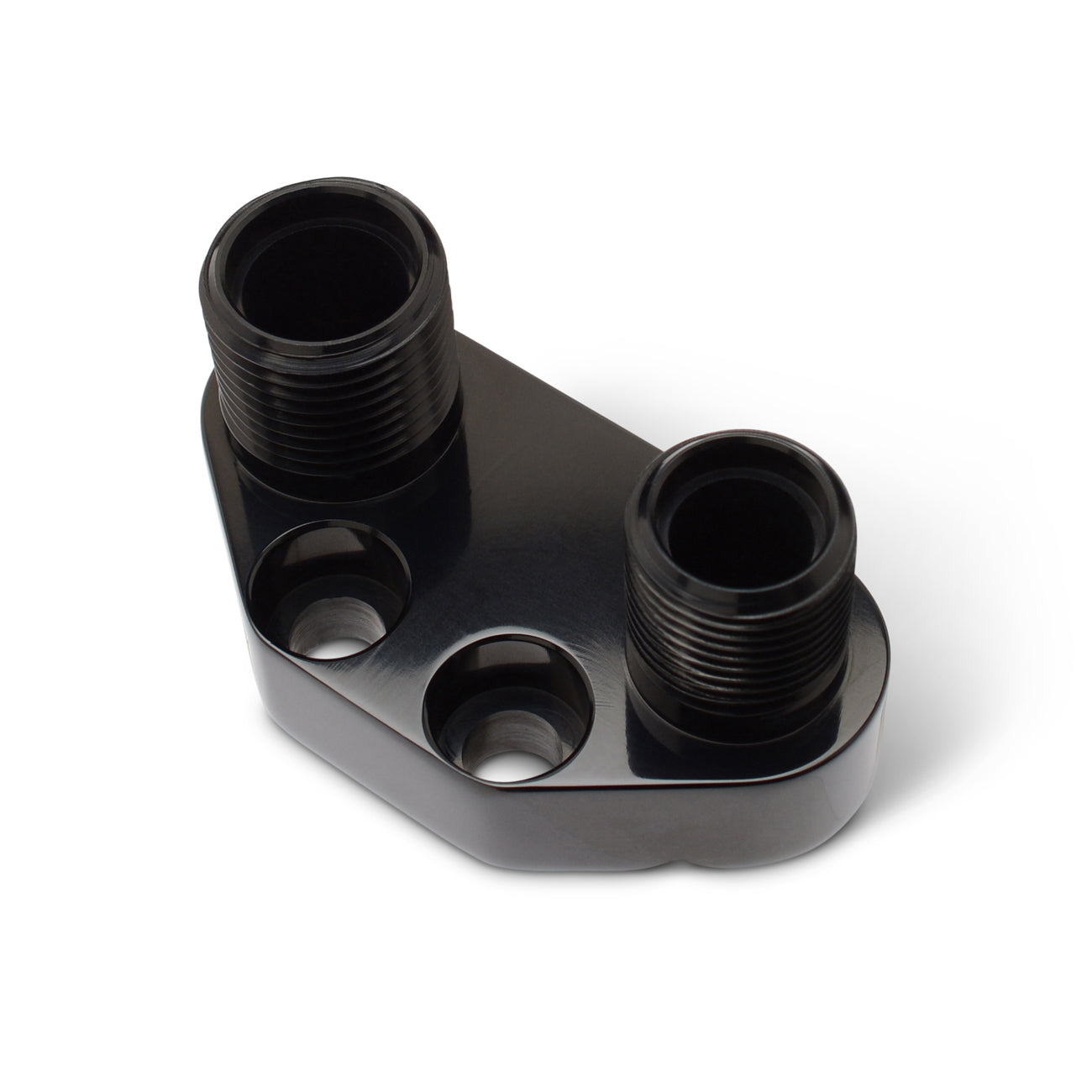 Air Compressor Manifold, precision CNC machined from billet aluminum in the USA. Adapts -8 and -10 lines to Sanden SD7 AC compressors. Includes stainless steel fasteners.