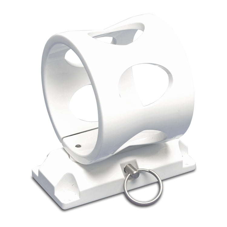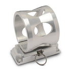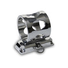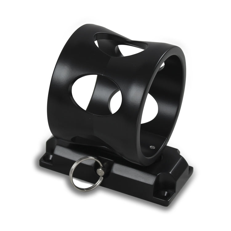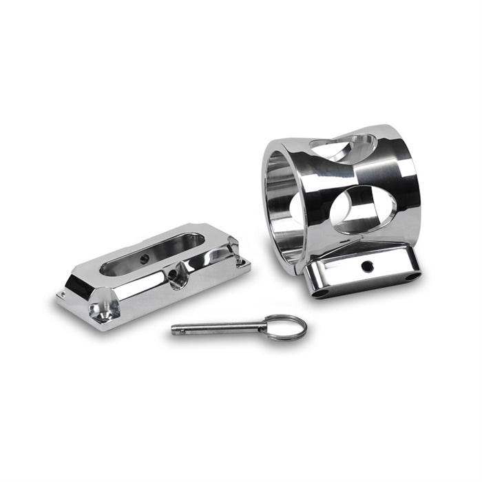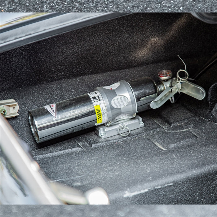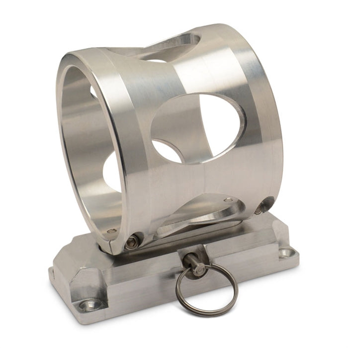 Our fire extinguisher bracket's unique construction and function is unsurpassed by others. These brackets are CNC machined from 6061-T6 aluminum and have been built to allow for mounting in any position. The round portion of the bracket is clamped permanently to the extinguisher (sold separately). The bracket is mounted with four fasteners and a quick release pin allows the extinguisher to be quickly and easily removed from the mount base. These large brackets are manufactured to work with our 2.5lb. (3"O.D.) extinguishers.
