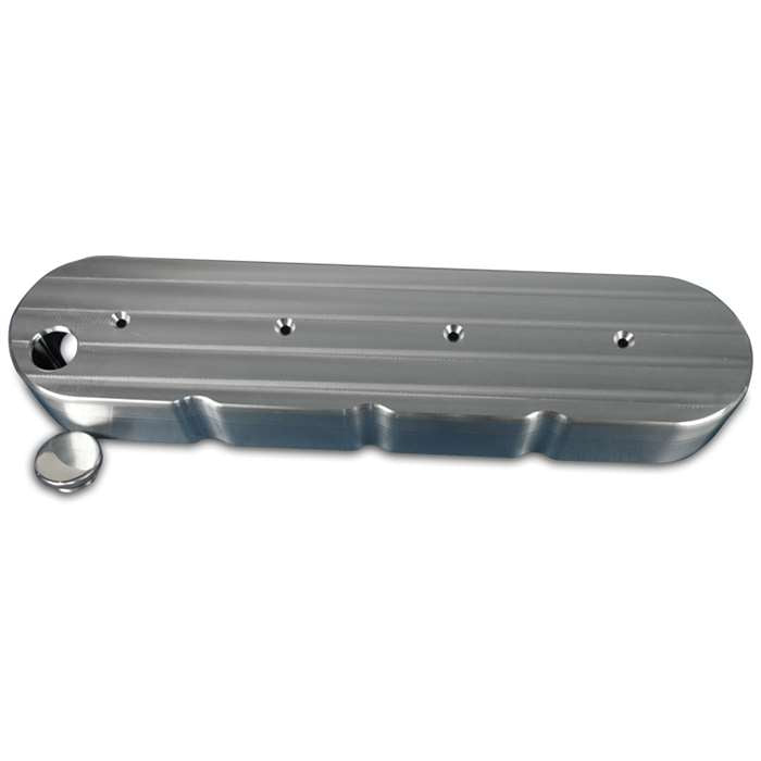 At Eddie Motorsports, we know that custom car owners demand the highest quality products, regardless of price. In response to this, we manufacture a line of LS Chevrolet one-piece full billet aluminum valve covers. Precision CNC machined in the USA from a single piece of premium 6061-T6 aluminum, the covers feature a ball milled top and have an aluminum screw-in oil fill cap on one side. They do not have bosses for coil brackets. They are 1-3/4" tall and include stainless steel fasteners.