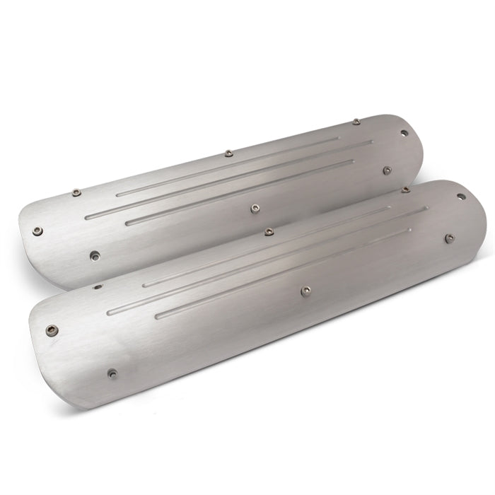 A high quality, custom alternative to covering the coils on your Chevy LS engine. Precision CNC machined from 1/4" billet aluminum, these covers come with aluminum stanchions that bolt to the coil mount bosses on your valve covers. These covers have ball milled accent tops and DO NOT have a provision to clear the stock rubber oil fill tube.