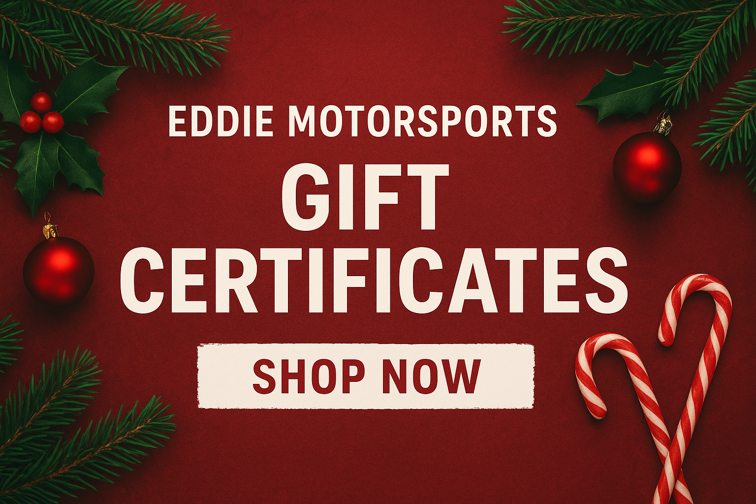 Give the gift of Eddie Motorsports and let your loved ones choose what they really want! Order multiple gift certificates to get your desired amount. Specify in the order notes the number of gift certificates and the specific amount for each.