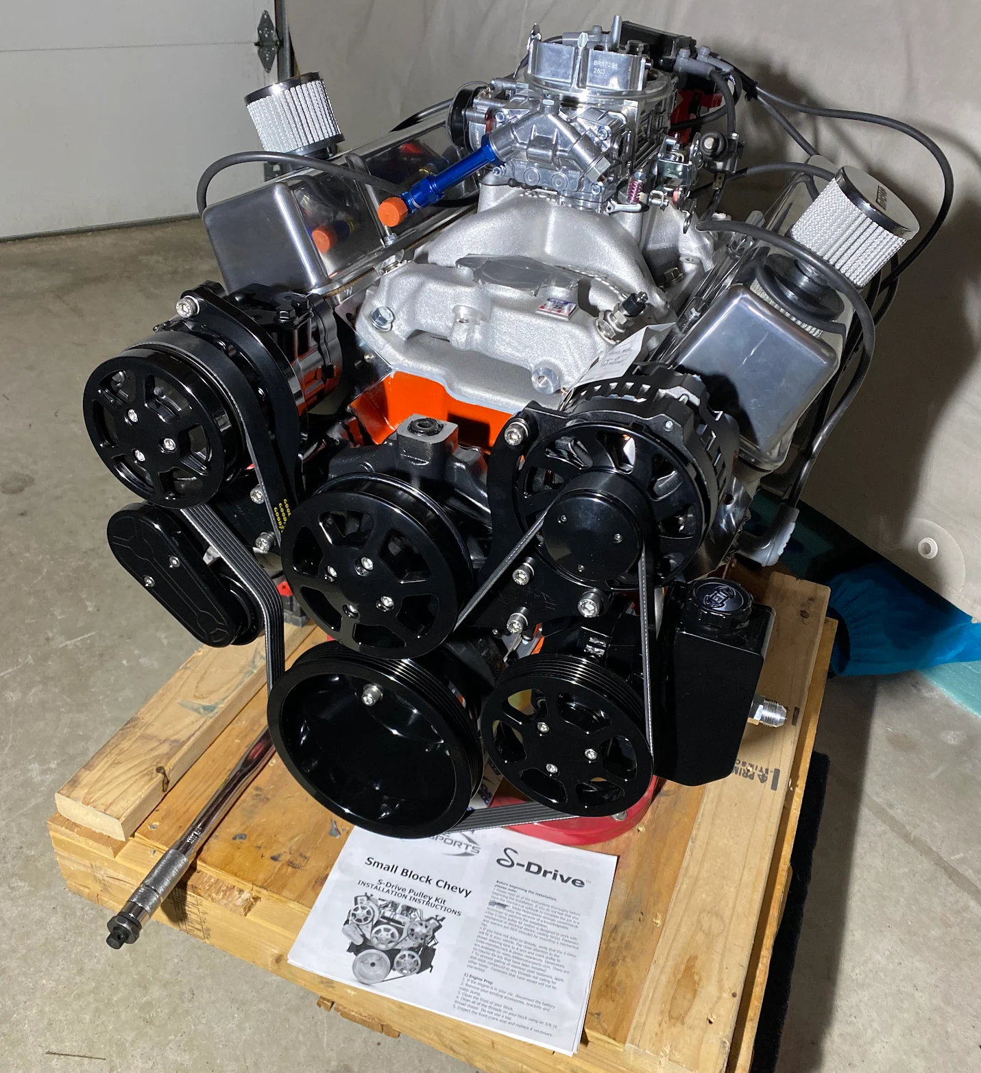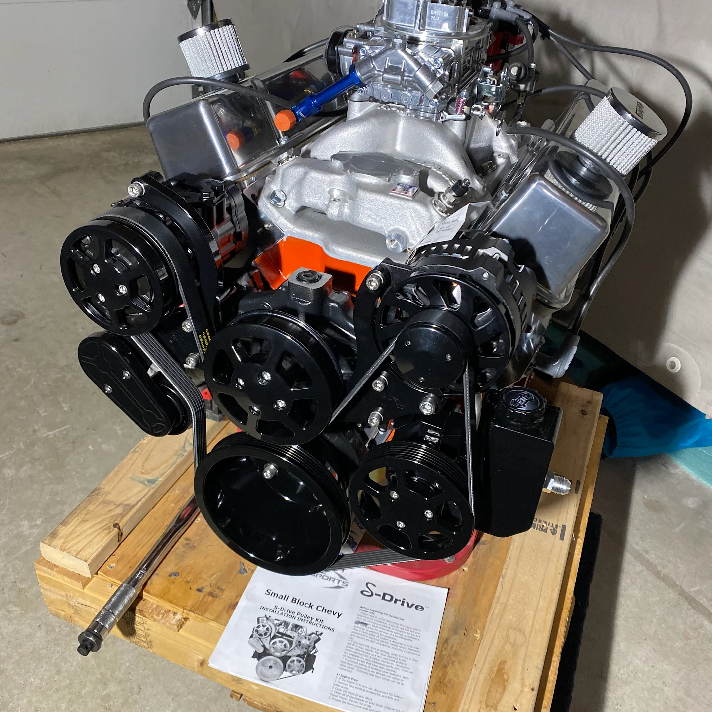 Eddie Motorsports S-Drive pulley systems are the most compact and complete serpentine kits on the market. They are also the easiest to install. Change the appearance & performance of your engine with a single six or eight rib tensioner and serpentine belts to drive all of your accessories. Our drive system’s brackets and pulleys are CNC machined from high quality aluminum. S-Drive pulley system’s also include all of the necessary stainless steel fasteners as well as the highest quality, name-brand components including Edelbrock/PRW/Tuff Stuff/Ford Racing water pumps, Powermaster alternators, Gates tensioner and serpentine belts, Sanden-style A/C compressors, and GM type II power steering pump. S-Drive kits are available in raw machined or highly polished finish as well as a variety of anodized or Fusioncoat colors.