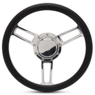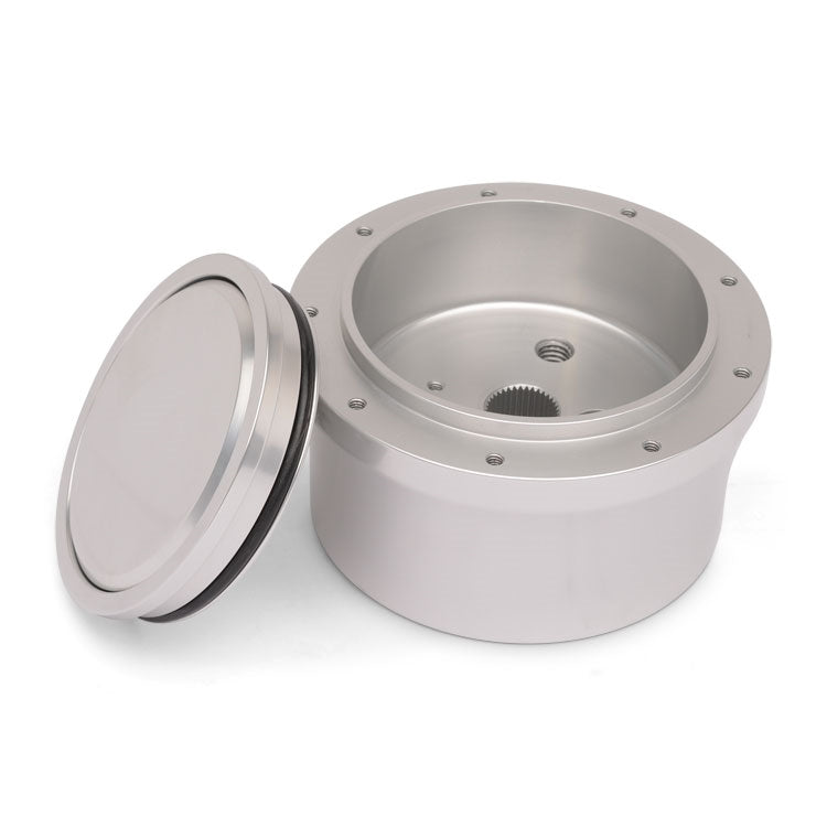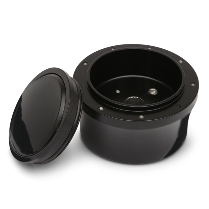 Billet steering wheel adapter and horn kit. Machined from 6061T6 aluminum. Fits 1967-1994 GM splined steering columns and industry standard nine-bolt steering wheels. The adapter is 2-1/2" tall and includes 8-32 stainless steel socket cap flathead screws. The adapter and horn are available in a raw machined or bright polished finish and in a variety of Fusioncoated colors.