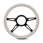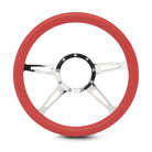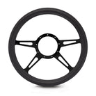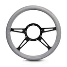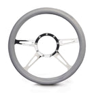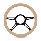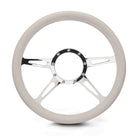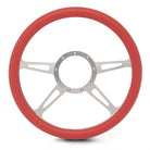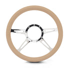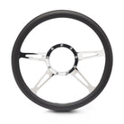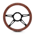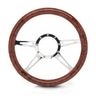 Eddie Motorsport's Classic 4 Spoke model steering wheel has highly polished spokes with a Woodgrain grip. These wheels are precision CNC-machined in the USA from high quality 6061-T6 billet aluminum. The wheels are 13 1/2 diameter and include a synthetic leather half wrap grip. GM, Ford or Mopar adapters and horn buttons are available and sold separately.