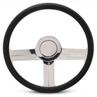 Billet steering wheel full cover horn kit. Get a stealth look with this kit that hides the steering wheel's mounting bolts. Machined from 6061T6 aluminum, kit fits Eddie Motorsports steering wheels and adapters. The full cover horn kit is available in seven custom finishes, specify when ordering.