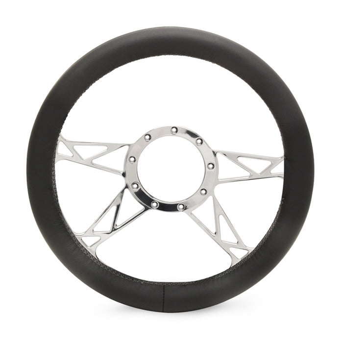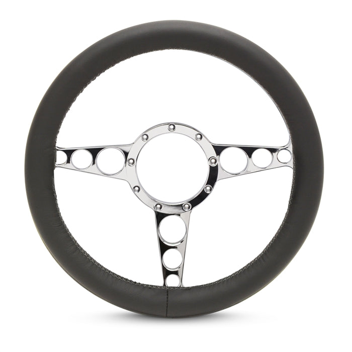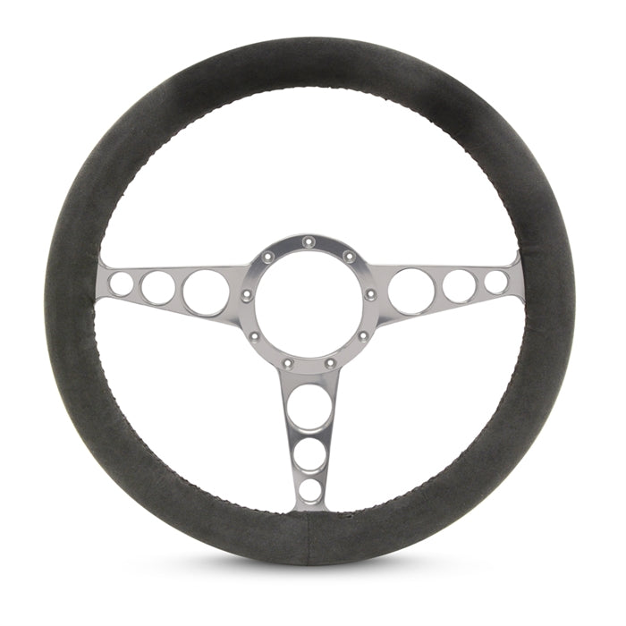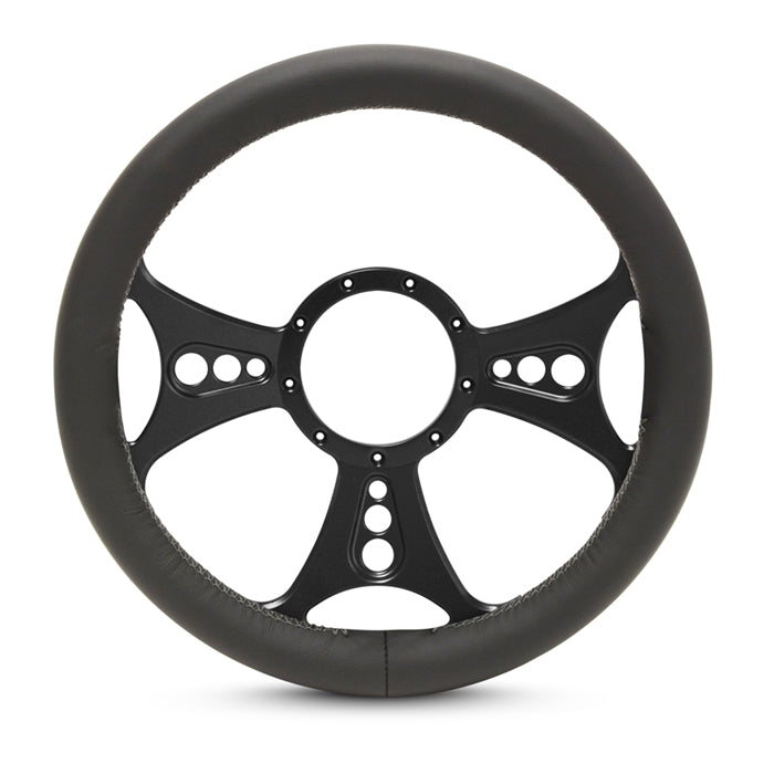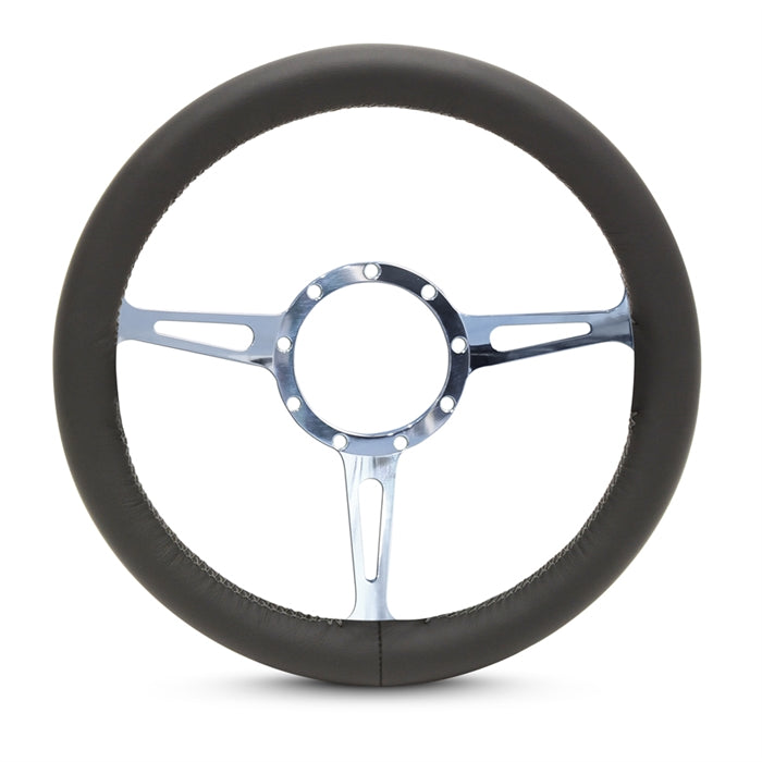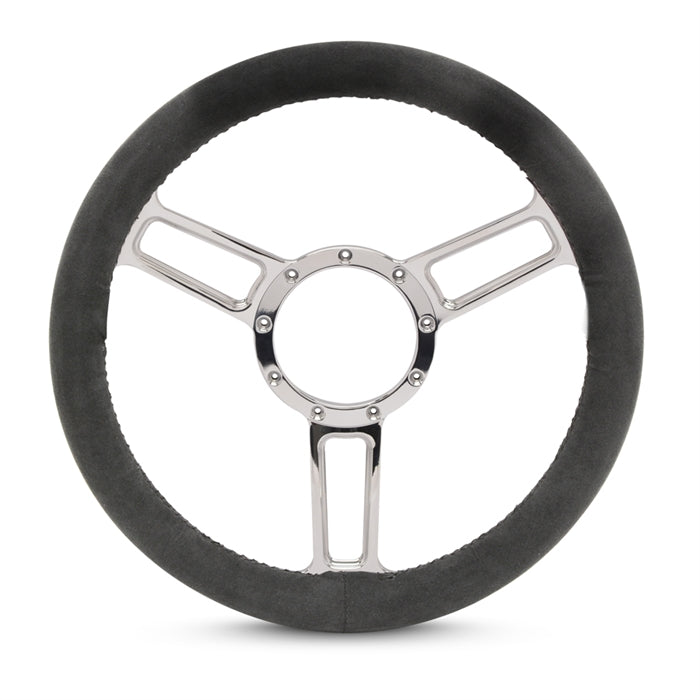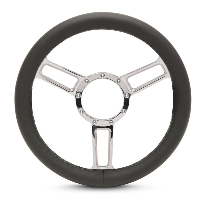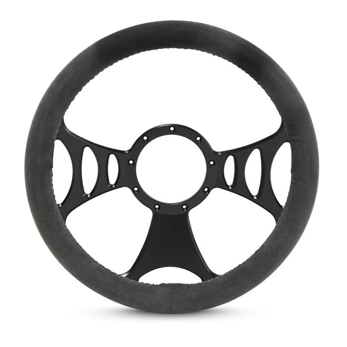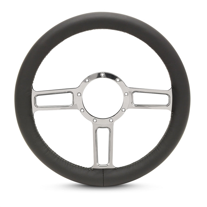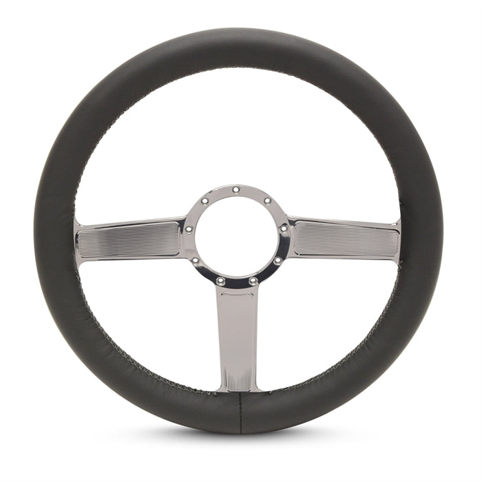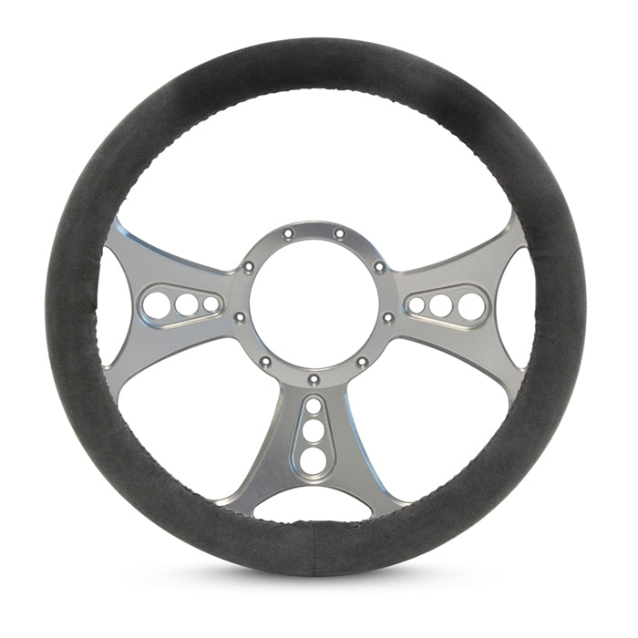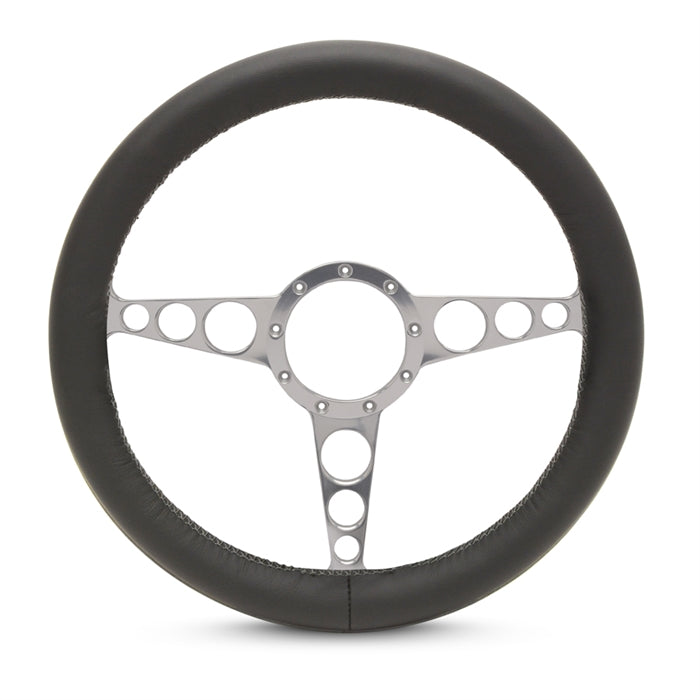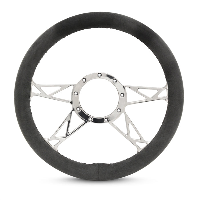 Eddie Motorsports newest product line is our affordable high quality billet aluminum steering wheels. These wheels are CNC machined in our Southern California facility. They can be purchased with a raw machined or highly polished finish or with one our Fusioncoat colors. The half-wrap grips are included in the price and are available in black, gray, tan, and red (specify when ordering). You can also wrap the wheel with your interior's matching leather or vinyl. The wheels are 13-1/2" in diameter. GM adapters and horn buttons are available and sold separately. Look for many new steering wheel models from Eddie Motorsports in the very near future!