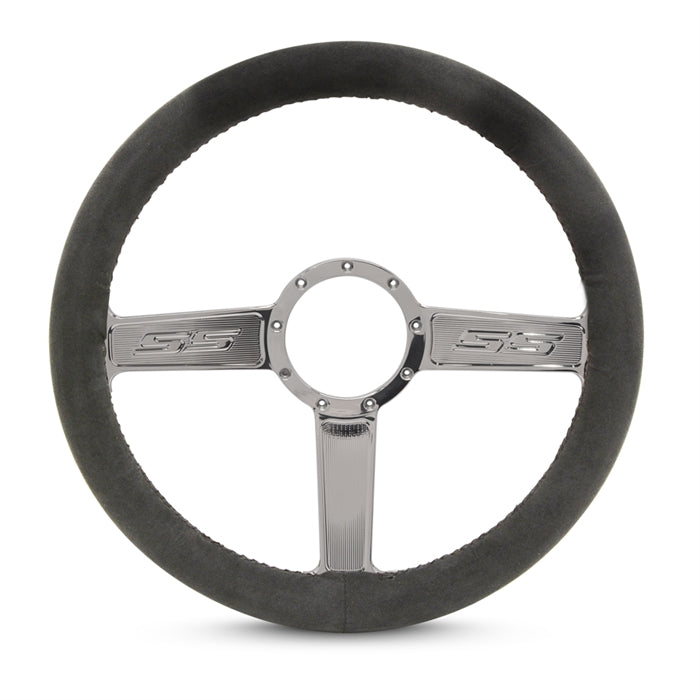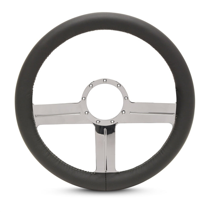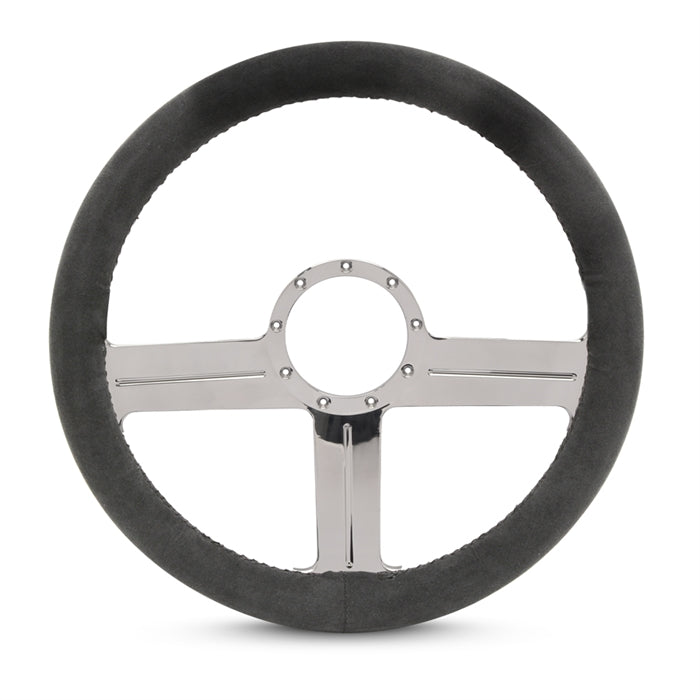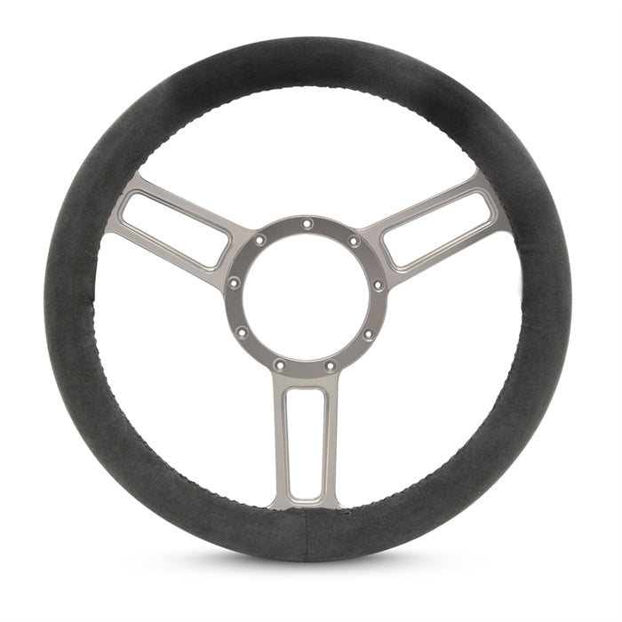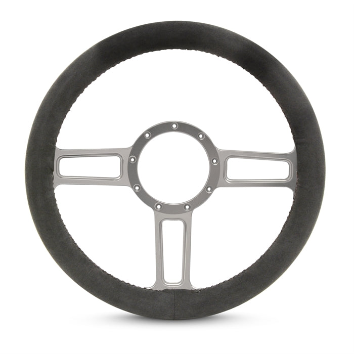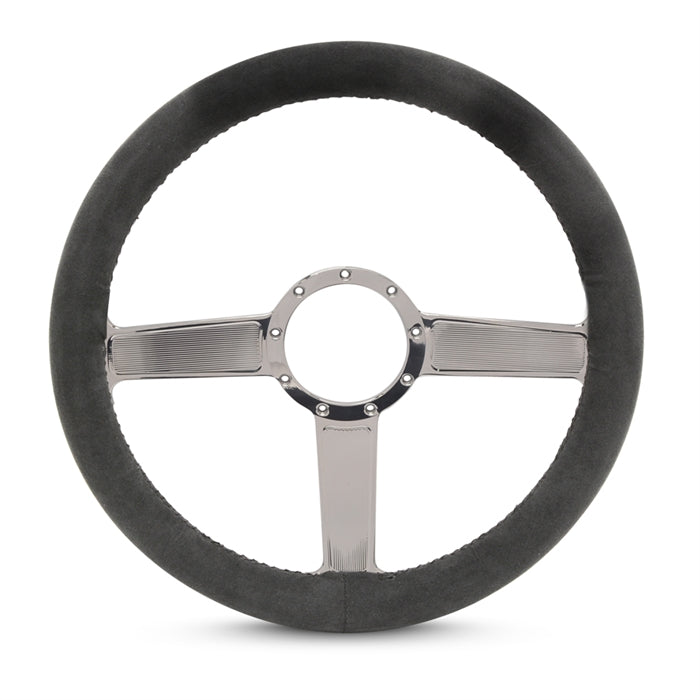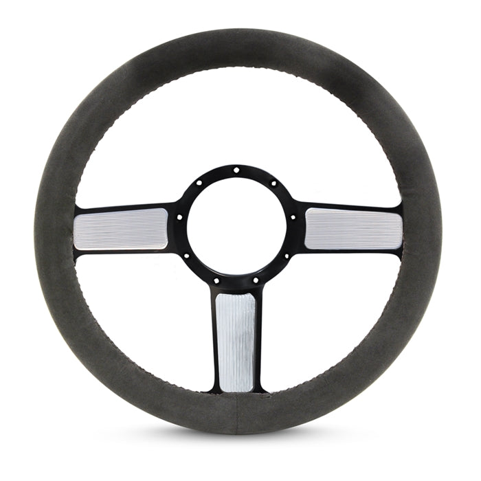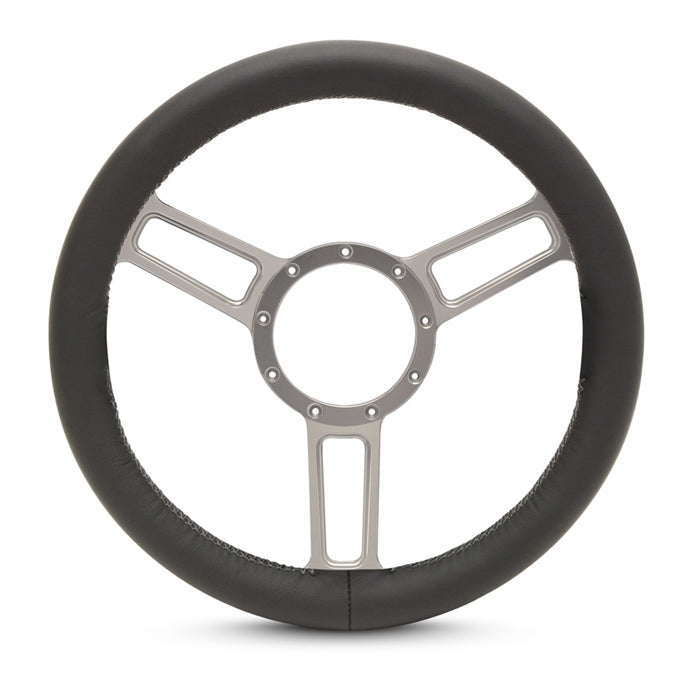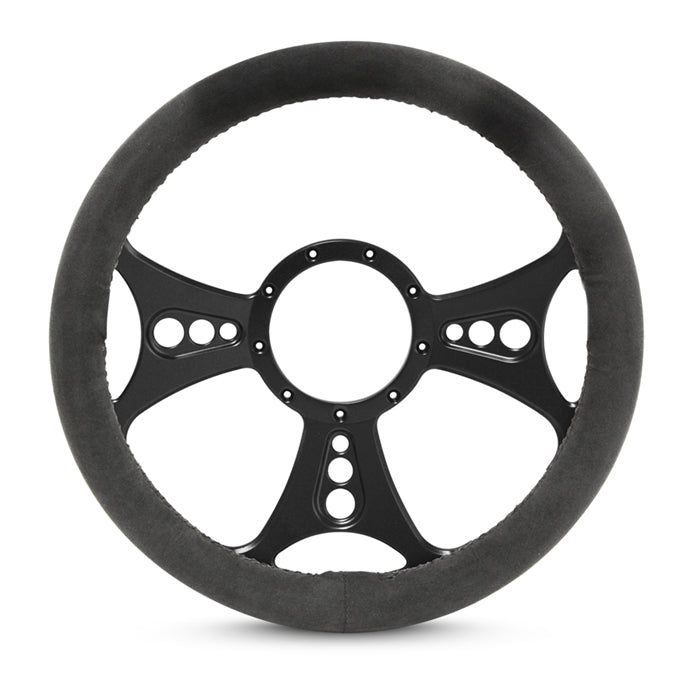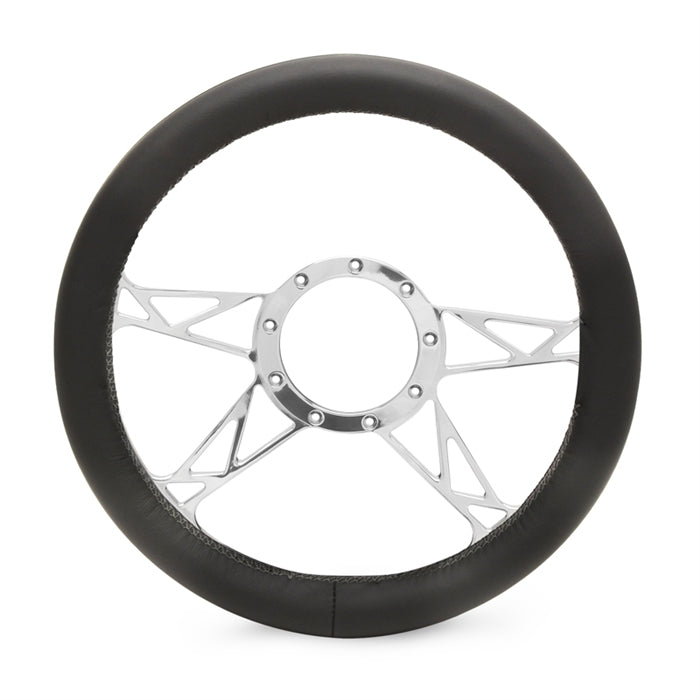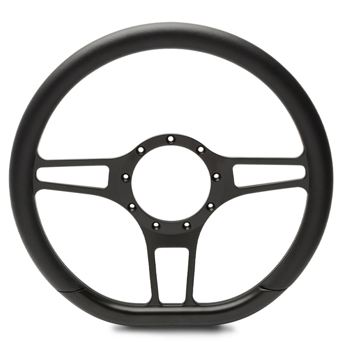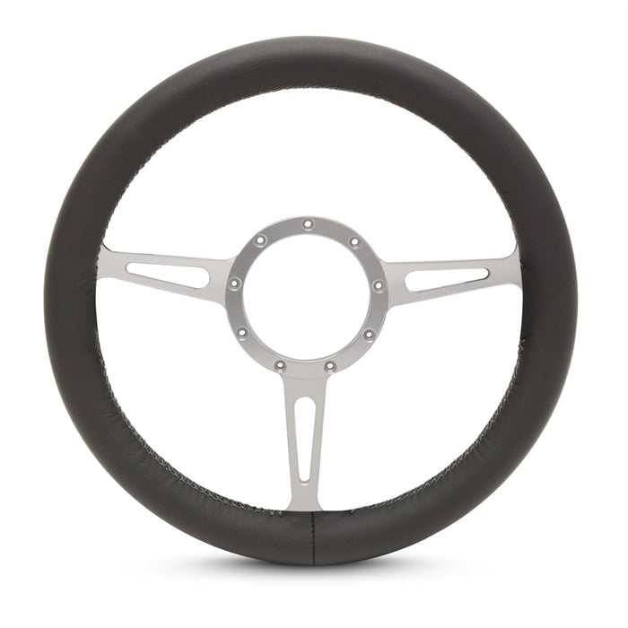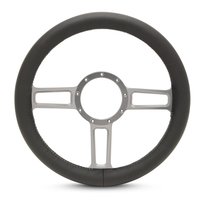 Eddie Motorsports newest product line is our affordable high quality billet aluminum steering wheels. These wheels are CNC machined in our Southern California facility. They can be purchased with a raw machined or highly polished finish or with one our Fusioncoat colors. The half-wrap grips are included in the price and are available in black, gray, tan, and red (specify when ordering). You can also wrap the wheel with your interior's matching leather or vinyl. The wheels are 13-1/2" in diameter. GM adapters and horn buttons are available and sold separately. Look for many new steering wheel models from Eddie Motorsports in the very near future!