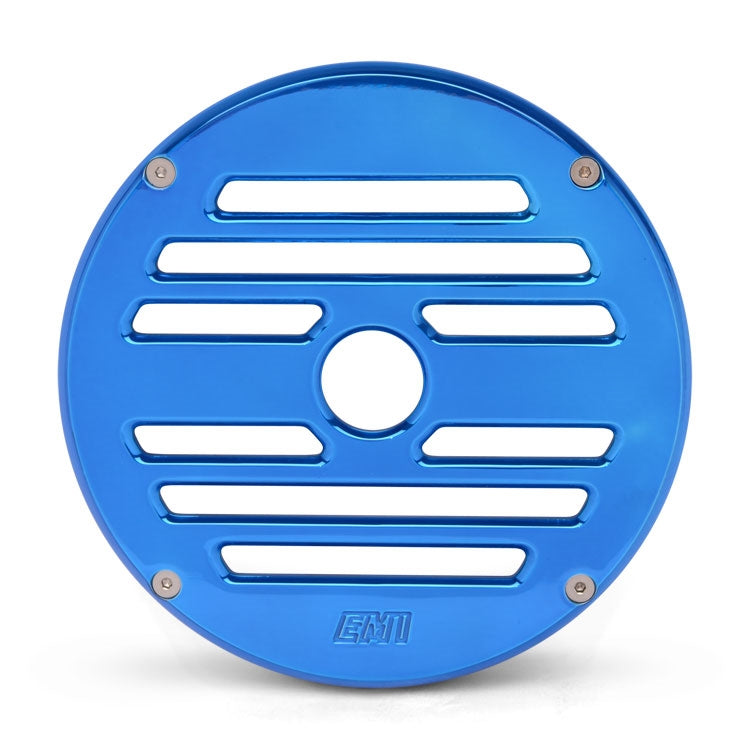 Dress up your speakers with Eddie Motorsport's billet aluminum speaker grills. The two piece kits come with a billet aluminum mounting ring which is fastened to your door panel or speaker box. The speaker grill is then attached to the ring with four stainless steel fasteners (included).