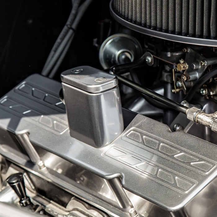 These breathers are precision CNC-machined from billet aluminum and are 3 3/8" tall. They feature a removable top cap for easy oil filling. The mounting area is 3 1/2" long and 1 3/4" wide and installation requires 1/4" fasteners (not included) and drilling or milling holes in your valve covers for the breather opening.