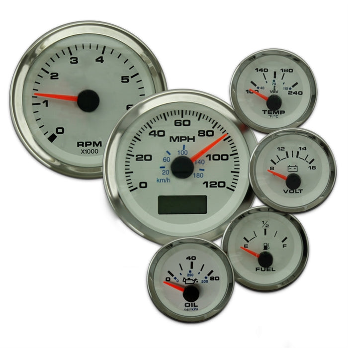 Elite 6 Gauge Kit with GPS Speedo, Ford Fuel Level Gauge White