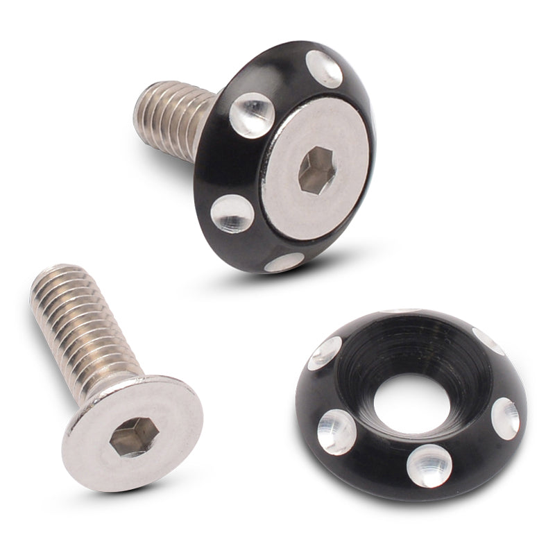 Our dimpled accent washers are a popular dress-up addition to fender and core support bolts.