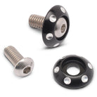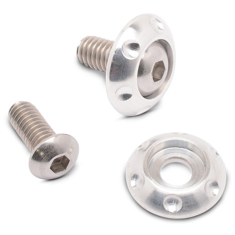 - 1/4" Size is recessed to accept a 1/4" button head bolt and AN washer (sold separately) the billet washers have a 7/8" outside diameter.