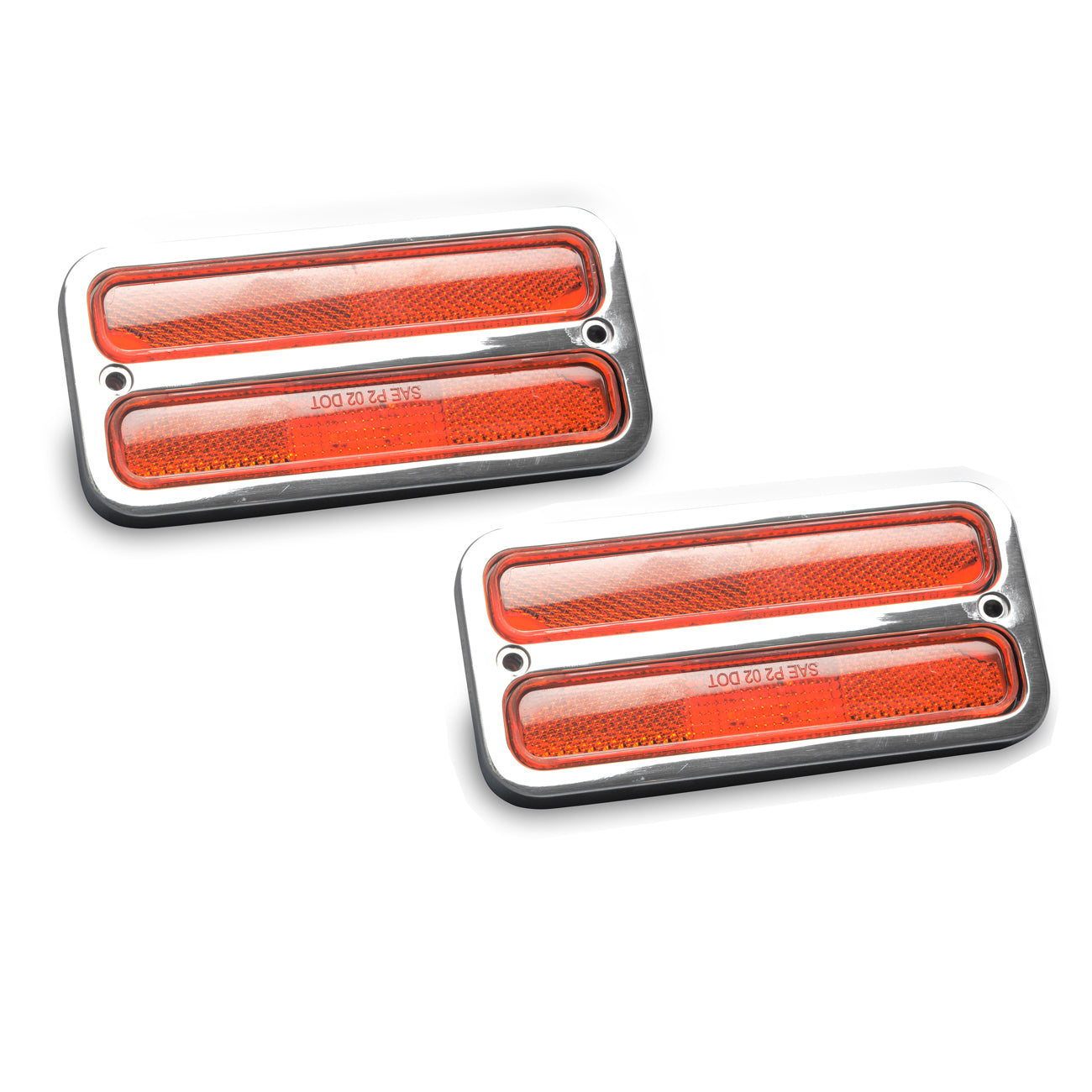 Billet Marker Light Bezels w/ Amber Lights - 1967-72 Chevy C-10 Truck