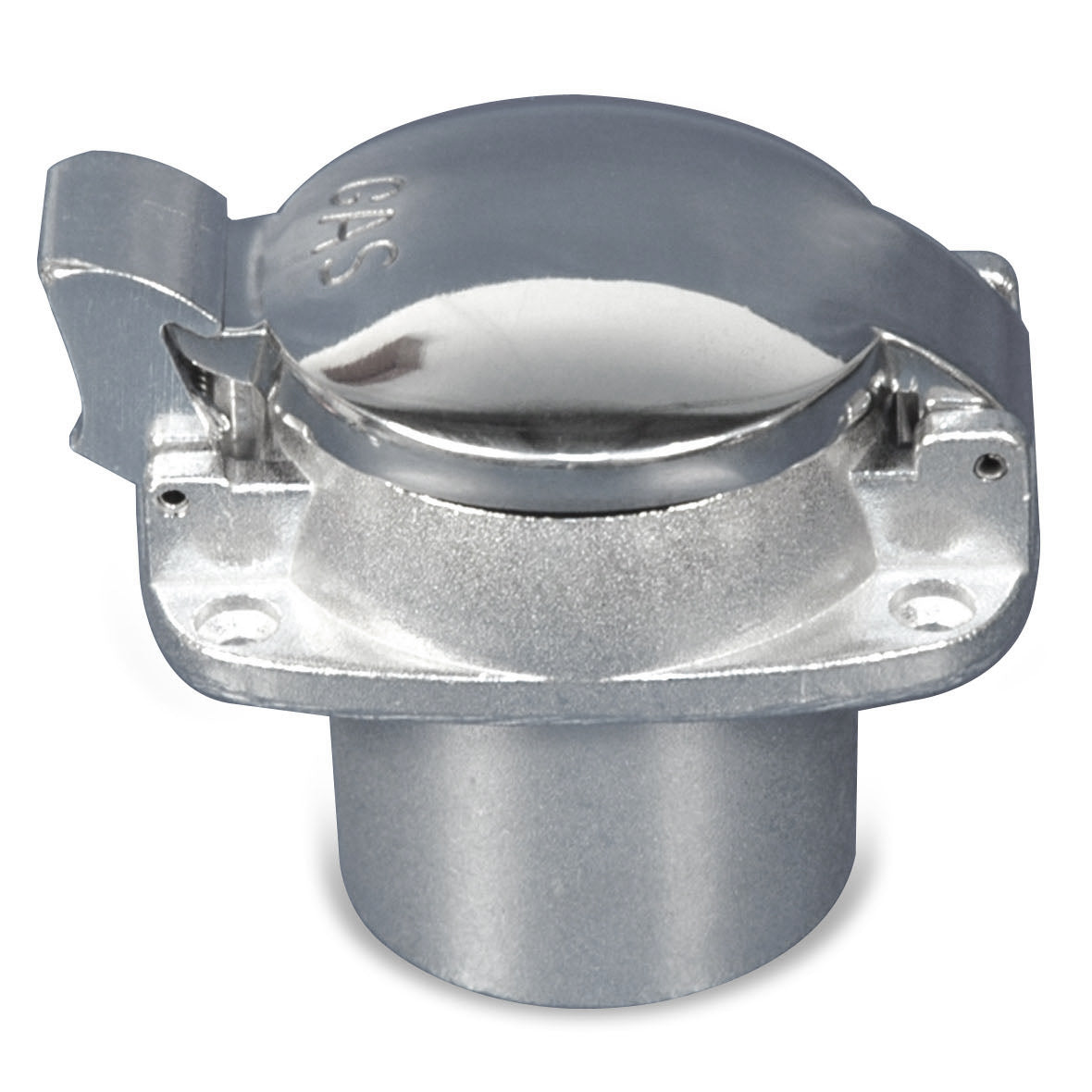 Cast aluminum and available with a polished finish only. The mounting base is 2-1/2" x 3-1/2". The fills ?are vented and available for use with 2" filler hose.