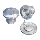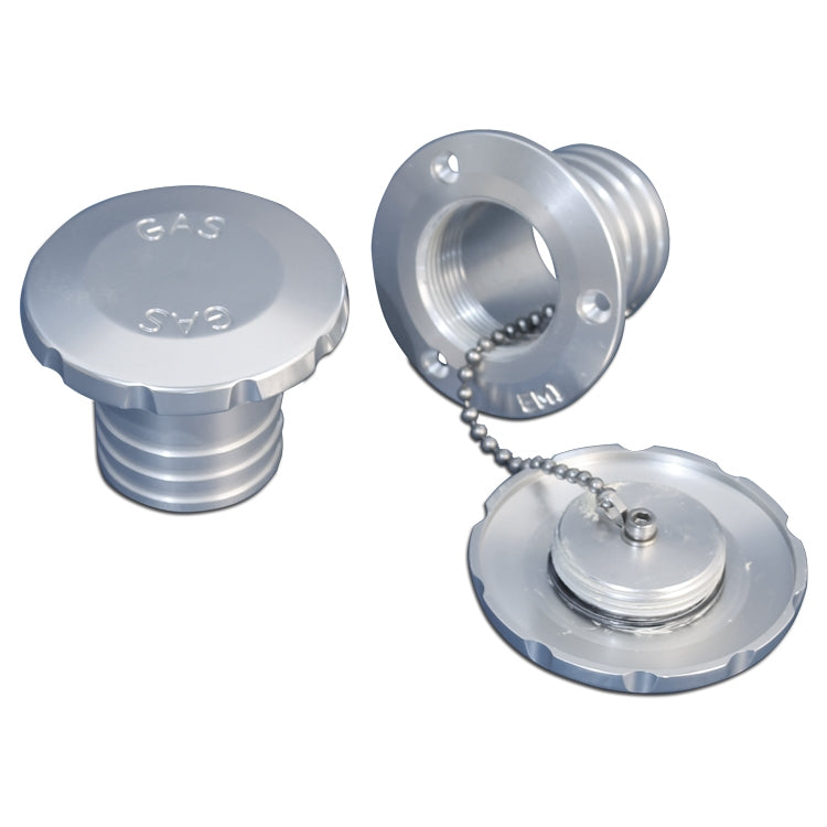 These billet gas fills are machined out of 6061-T6 aluminum. With a low profile style, the outer edge features an oversized contoured knurl making for easy removal. They mount with three hidden screws (sold separately) and are 3 1/2" in diameter. They accept 1-1/2 ID fuel fill hose.