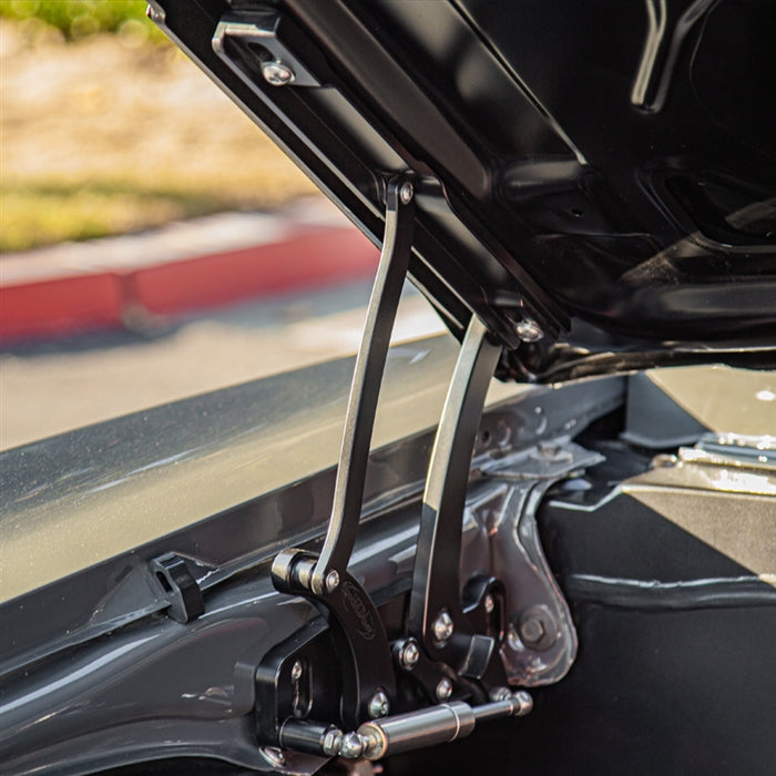NOTE: Kits come standard with struts for a stock steel hood. If your vehicle has something other than a stock steel hood, when purchasing, specify in the order notes what type of hood you are using: aftermarket steel, fiberglass, or carbon fiber or if the hood has been modified in any way..