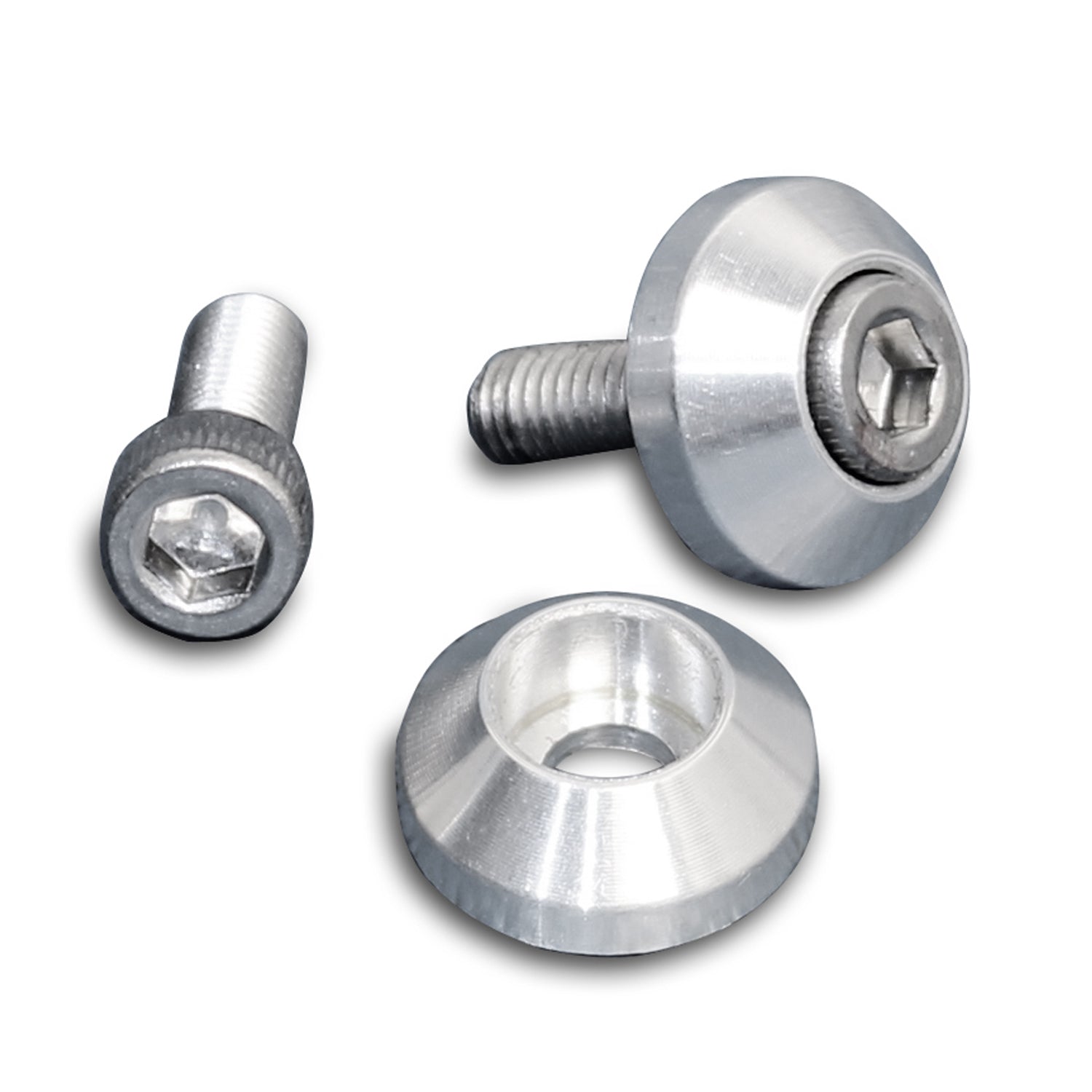 Machined to the same dimensions as our Lightning washers, these plain billet aluminum socket cap washers have a smooth outer edge. They are recessed to accept a socket cap screw.