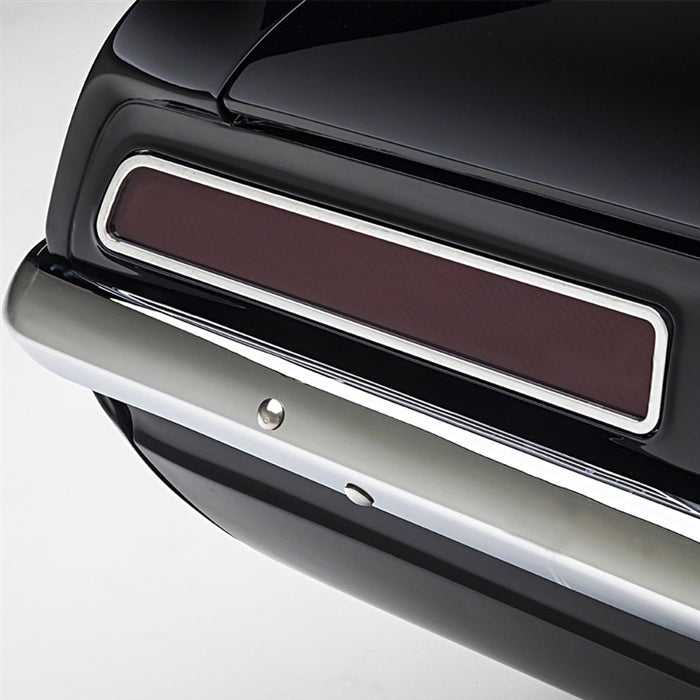 Billet tail light bezel and lens only assembly for your '69 Camaro. Simple bolt in installation that works with your stock tail light bulbs and housings.