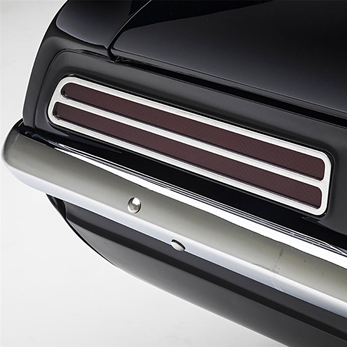 Billet RS tail light bezels and lens only assembly for your '69 Camaro. Simple bolt in installation that works with your stock taillight bulbs and housings.